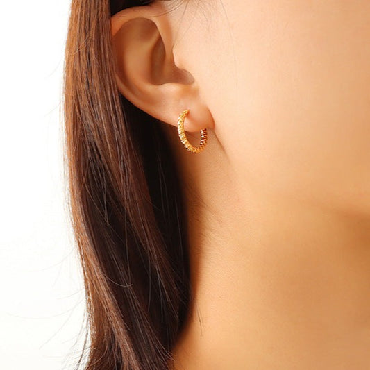 Classic Round and Square Cut Inlaid Hoop Earrings